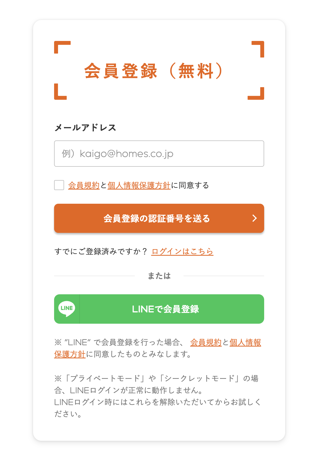 会員登録にはメールアドレスを利用する方法と、LINEでの登録方法があります。